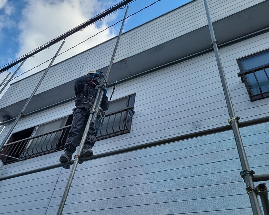 リフォーム工事や外壁等のやり替え工事で作業をするために足場を設置したりもしますが、多いのは単管組一側足場及びシート張り養生をしております。