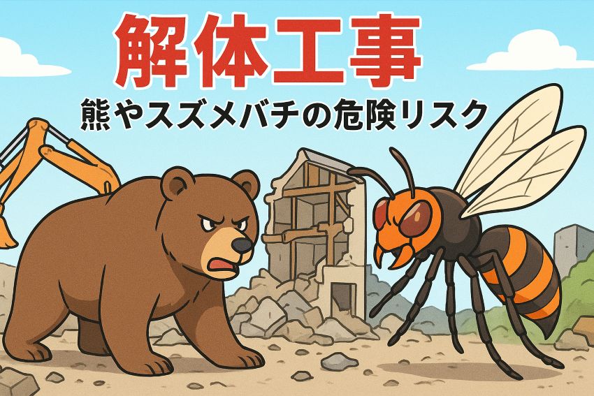 奈良県内、奈良県周辺エリアなどを対象に、熊やスズメバチといった野生動物による危険など、「自然リスク付きの現場」での解体工事についてまとめています。
