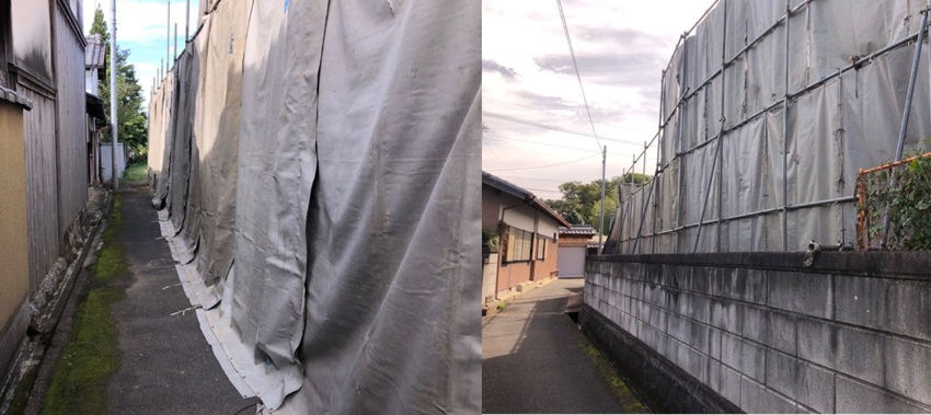 表と裏の道路側もしっかり養生を設置します。