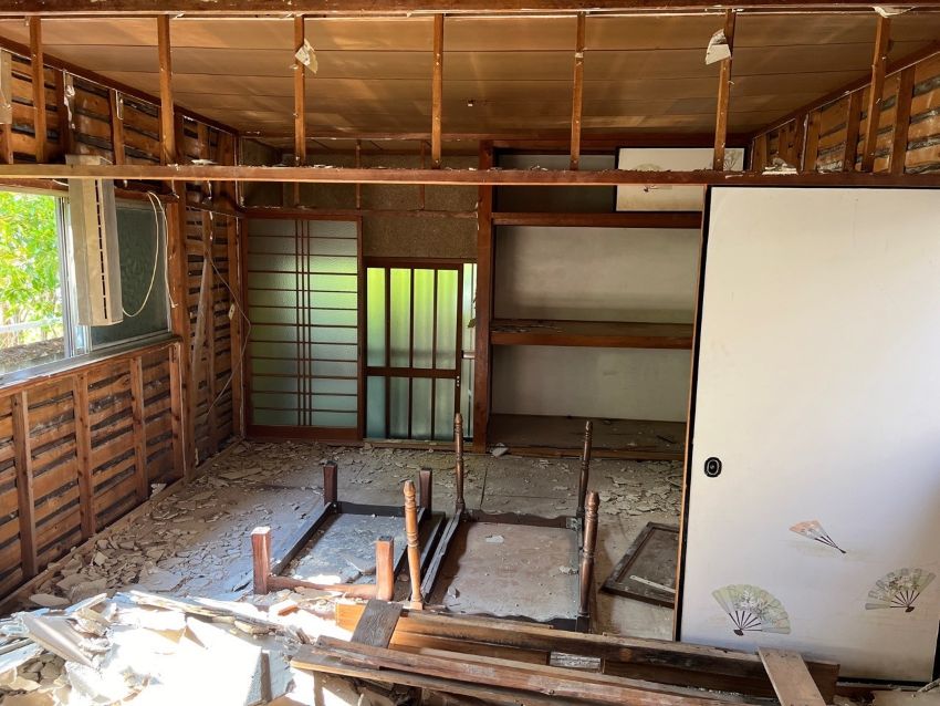 残置物が片付いた後は、畳を搬出し、手解体で内部の解体をしていきます。