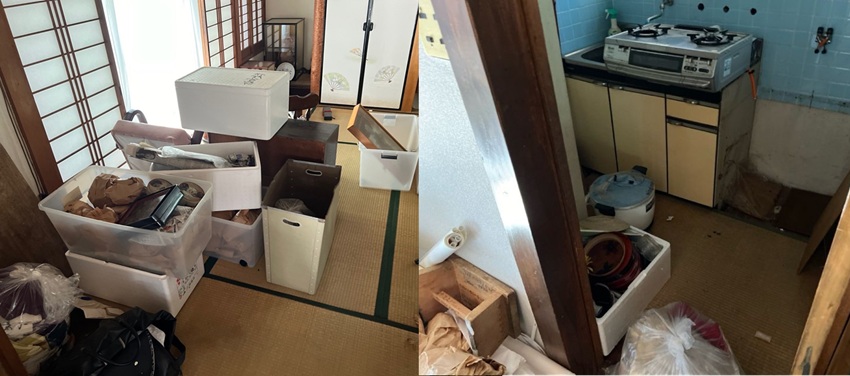 離れは倉庫状態となっており、残置物がたくさん残っています。