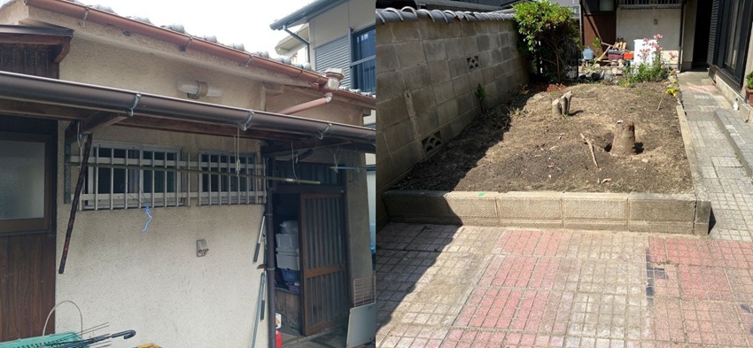 【『施工事例』㊾:離れ(木造瓦葺平屋建)・花壇、解体撤去工事・解体費用相場|奈良の解体工事UK工業】