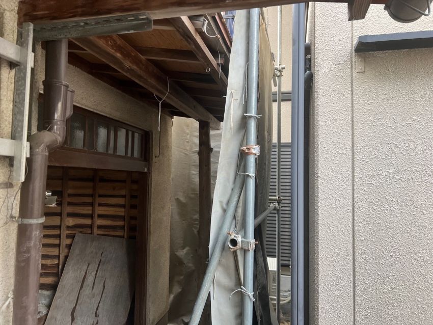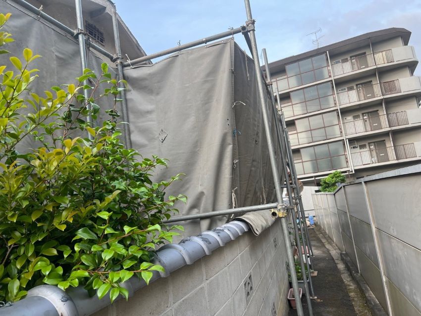 住居の裏側部分にもしっかり養生を設置します。
